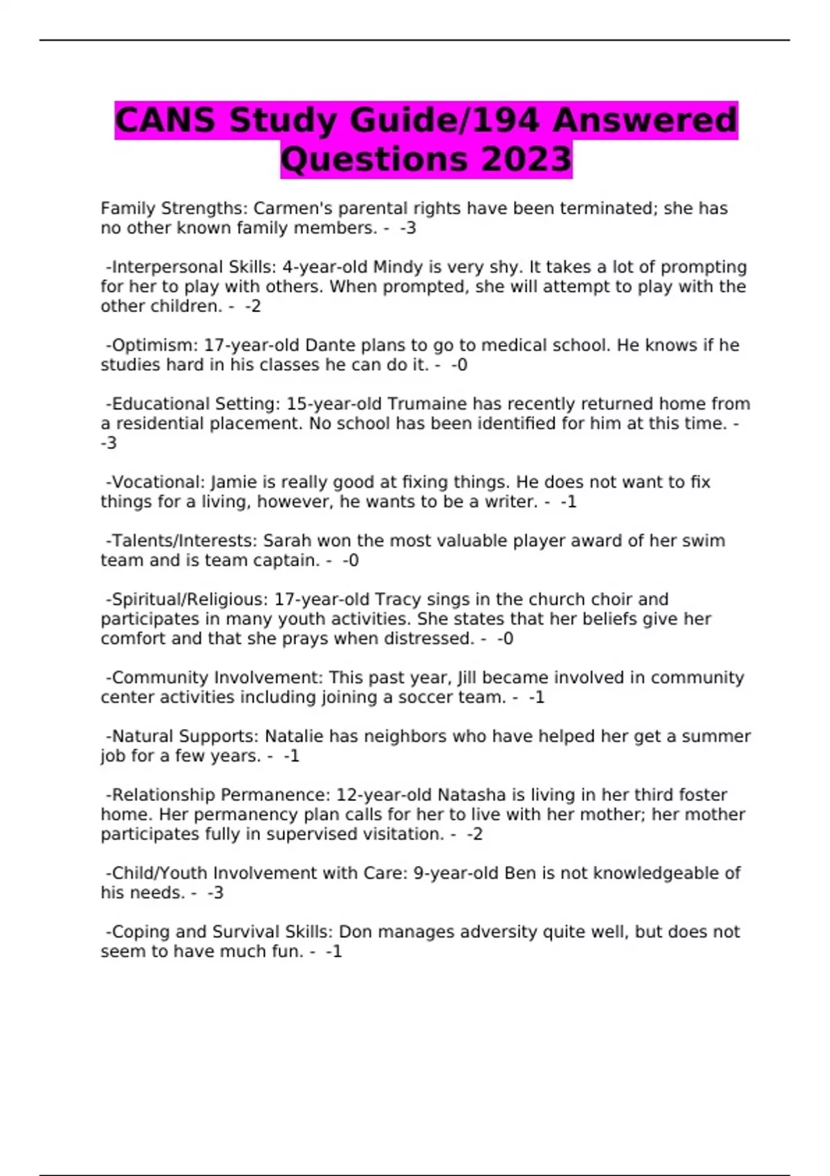 CANS Study Guide/194 Answered Questions 2023