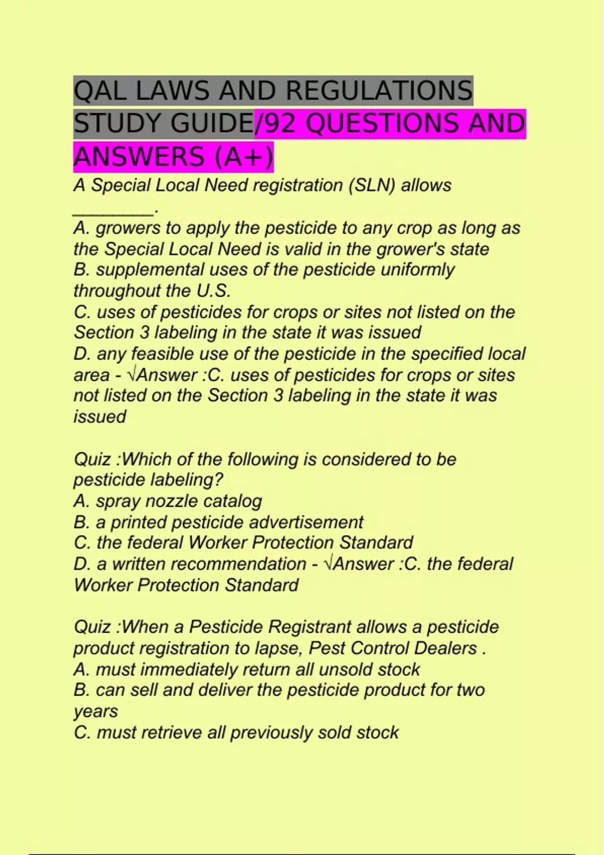 QAL LAWS AND REGS/ QUESTIONS AND ANSWERS (A+)