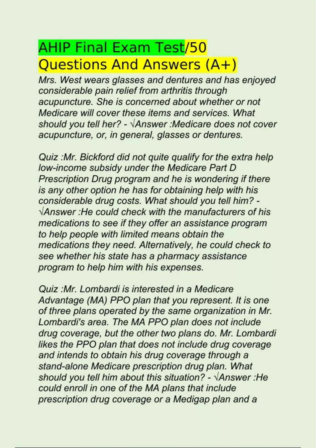 AHIP 2023/ Questions And Answers (A+)