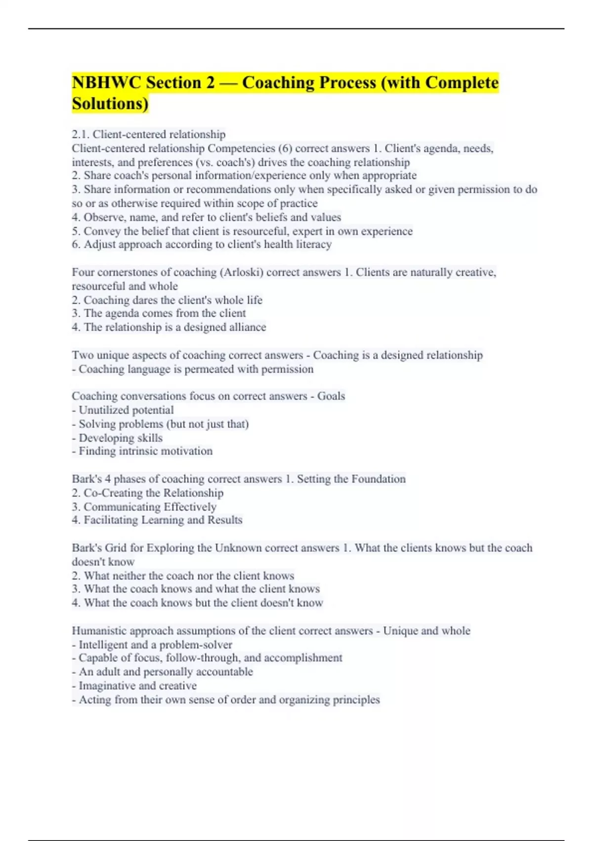 NBHWC (100% Correct Answers) NBHWC Section 2 — Coaching Process (with Complete Solutions) NBHWC 4 — Ethics/Legal (A+ Graded) MI Terms & Study Guide NBHWC Exam (A+ Guaranteed) NBHWC Practice Test (All Possible Questions Answered Accurately) NBHWC Exam Prep (All Accurate 100%) NBHWC (A+ Graded Already)