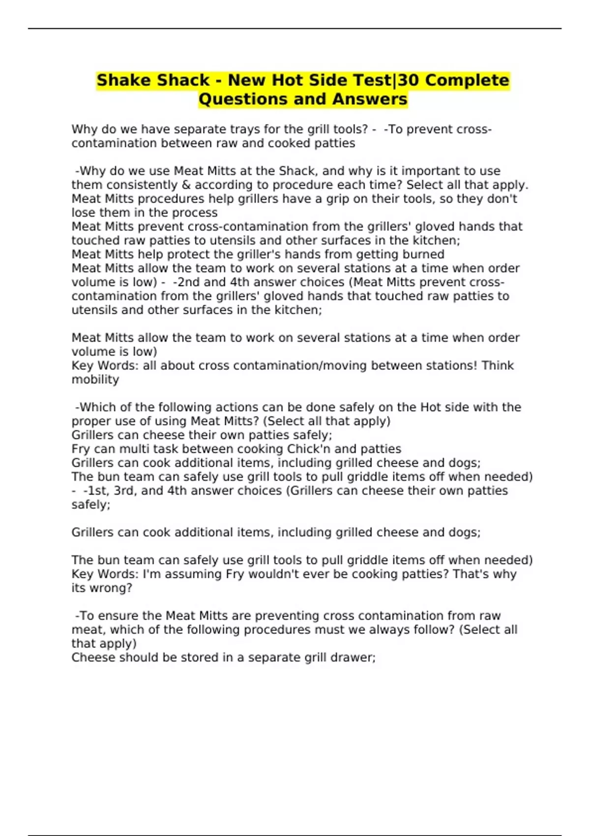 SHAKE SHACK EXAMS - QUESTIONS AND ANSWERS - PACKAGE DEAL