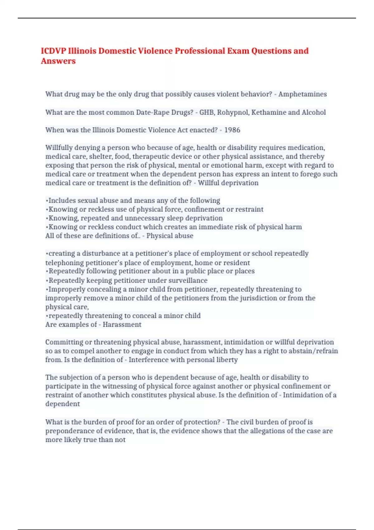 ICDVP Illinois Domestic Violence Professional Exam Questions and Answers