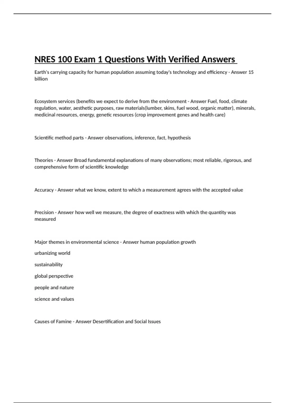 NRES 100 Exam, NRES 100 UIUC Exam 1, NRES 100 Final Exam, NRES 100 Exam 1 Study Guide, NRES 100 FINAL EXAM, NRES 100 Exam 2, NRES 100 TEST 2, UIUC NRES 100 -Exam 2, NRES 100 EXAM 1, NRES 100 Final Exam Solved 100%, NRS 100- Exam 3, NRES 101 Final Exam Questions & Answers 100% Correct