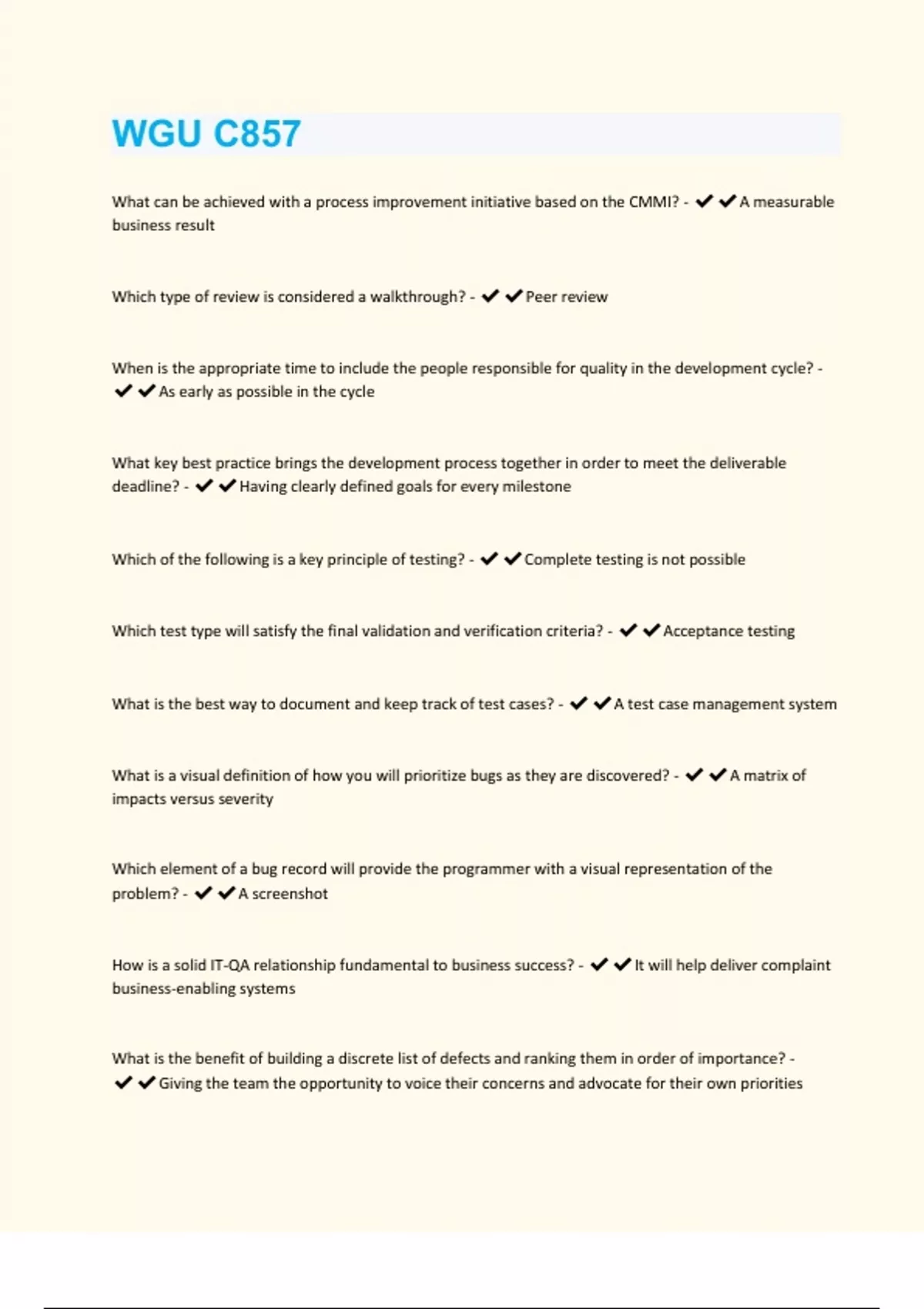 C857 Software Quality Assurance Study Guide With Correct Answers Graded A+