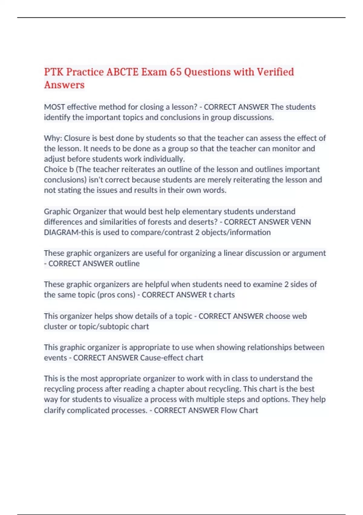 PTK Practice ABCTE Exam 65 Questions with Verified Answers,ABCTE PTK Exam Study 391 Questions with Verified Answers,ABCTE PTK Practice Exam 42 Questions with Verified Answers,ABCTE - Special Education Standard Exam 125 Questions with Verified Answers,ABCTE English Exam 178 Questions with Verified Answers,ABCTE PTK Review Exam 131 Questions