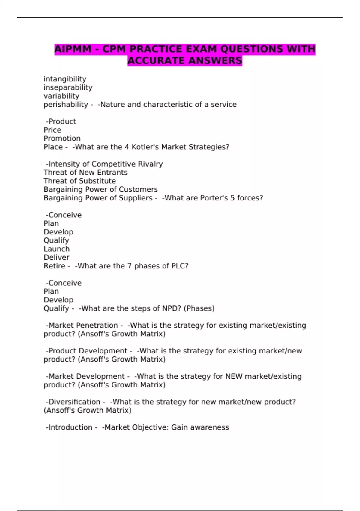 AIPMM EXAMS - QUESTIONS AND ANSWERS - BUNDLE