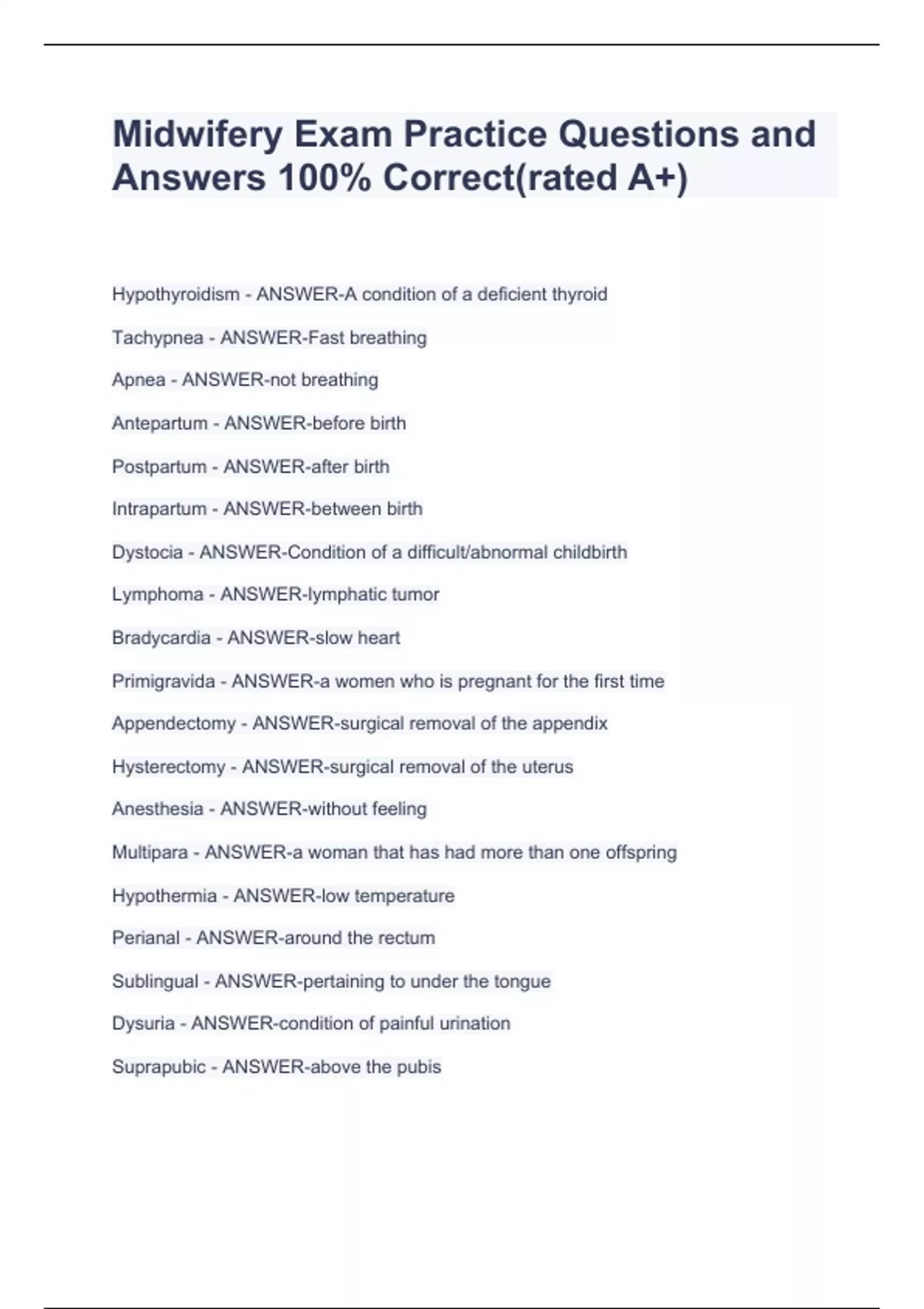 Midwifery Exam Practice Questions and Answers 100% Correct(rated A+)PACKAGE DEAL Midwifery Exam Practice Questions and Answers 100% Correct(rated A+)PACKAGE DEAL Midwifery Exam Practice Questions and Answers 100% Correct(rated A+)PACKAGE DEAL Midwifery Exam Practice Questions and Answers 100% Correct(rated A+)PACKAGE DEAL Midwifery Exam Practice Qu