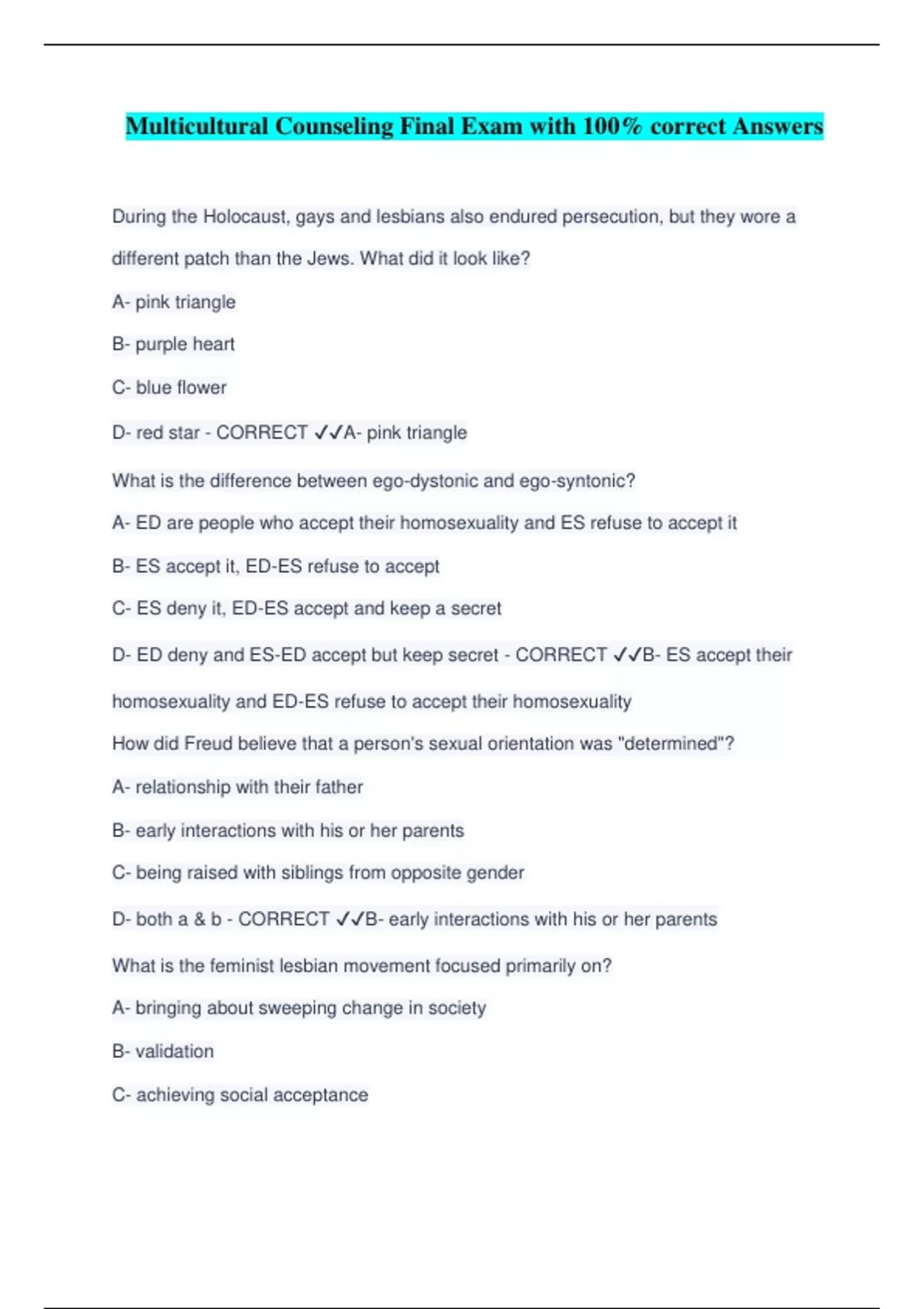 Multicultural Counseling Exam 3 Questions and Answers (Graded A)