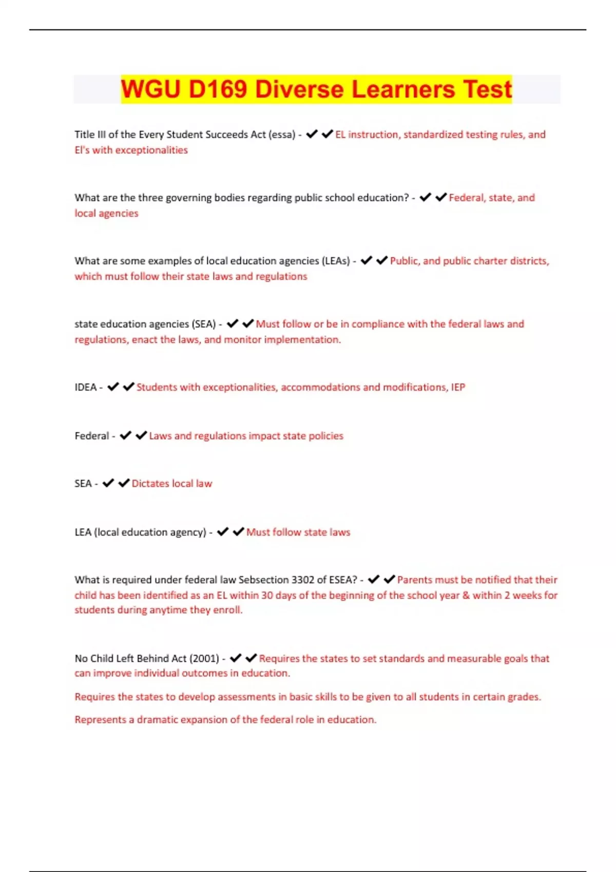 WGU D169 Diverse Learners Test/ (Top 2024/2025 EXAM REVIEW PAPERS / GRADED A+/ 100% Accurate)