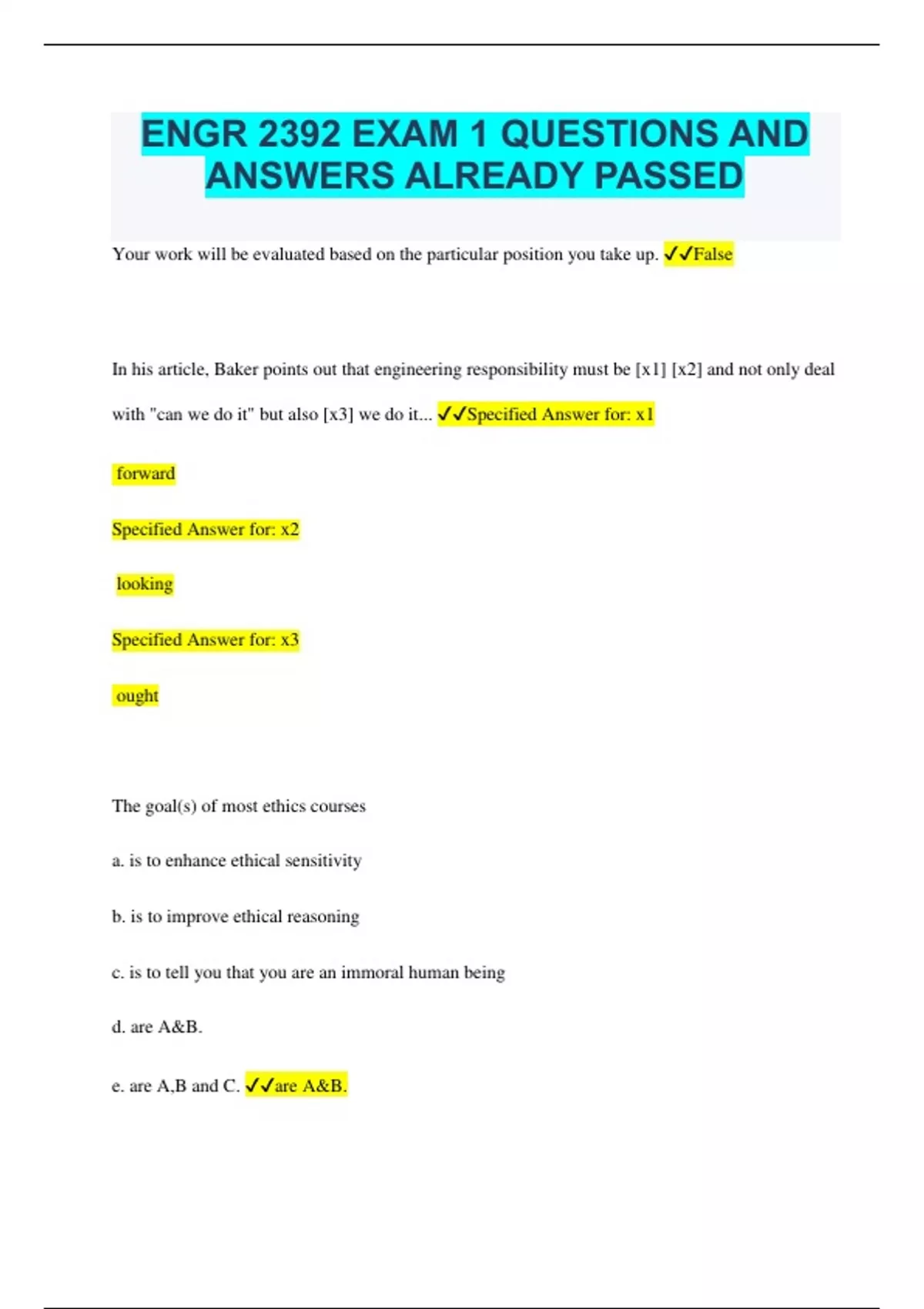 ENGR 2392 Bundled Exams Questions and Answers (2023/2024) (Complete and Accurate)