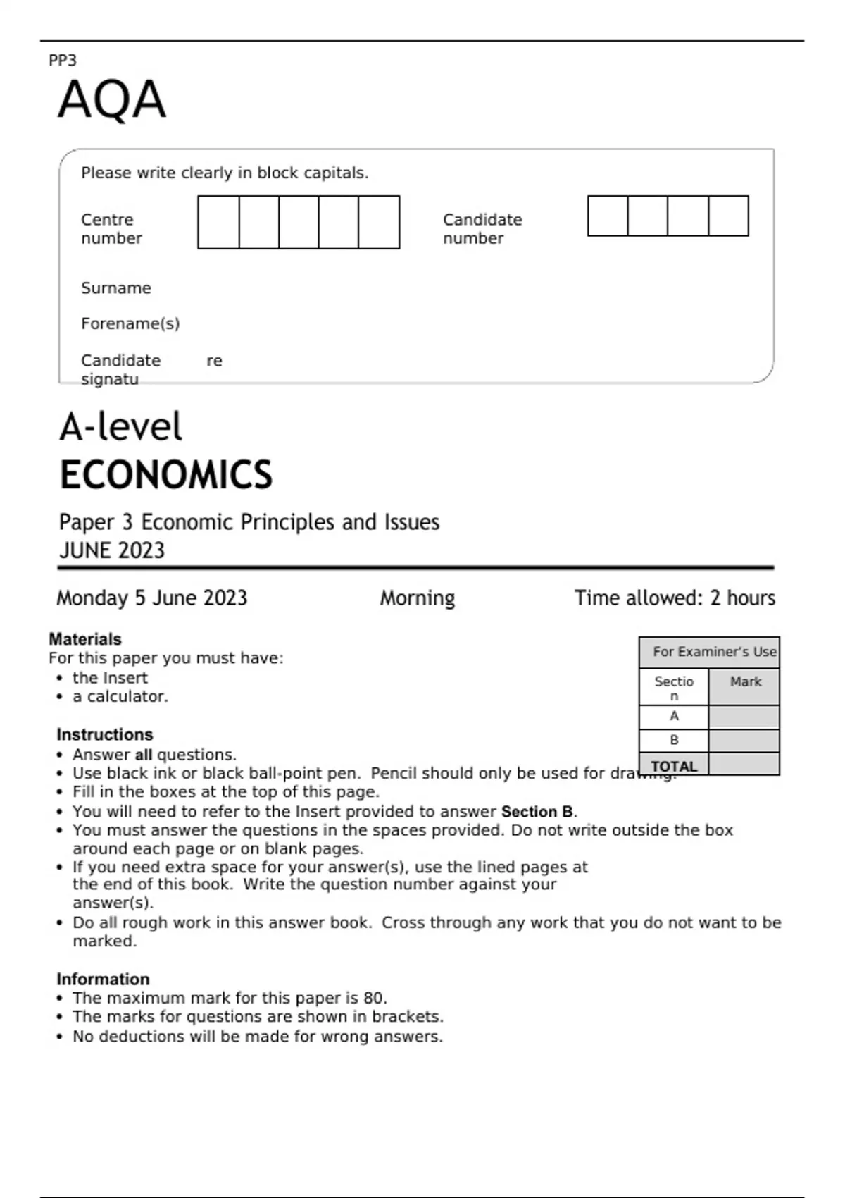 AQA A LEVEL ECONOMICS PAPER 3 JUNE 2023 FINAL QUESTION PAPER AND MARK SCHEME
