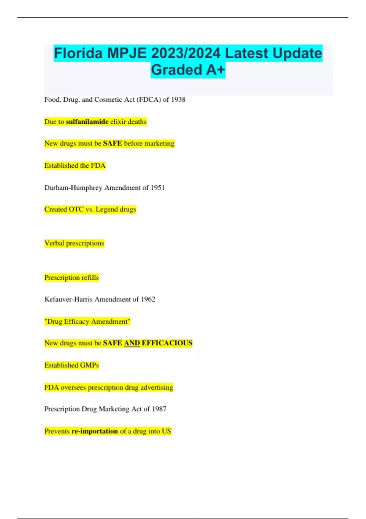 Florida MPJE Bundled Exams Questions and Answers (2023/2024) (Complete and Accurate)