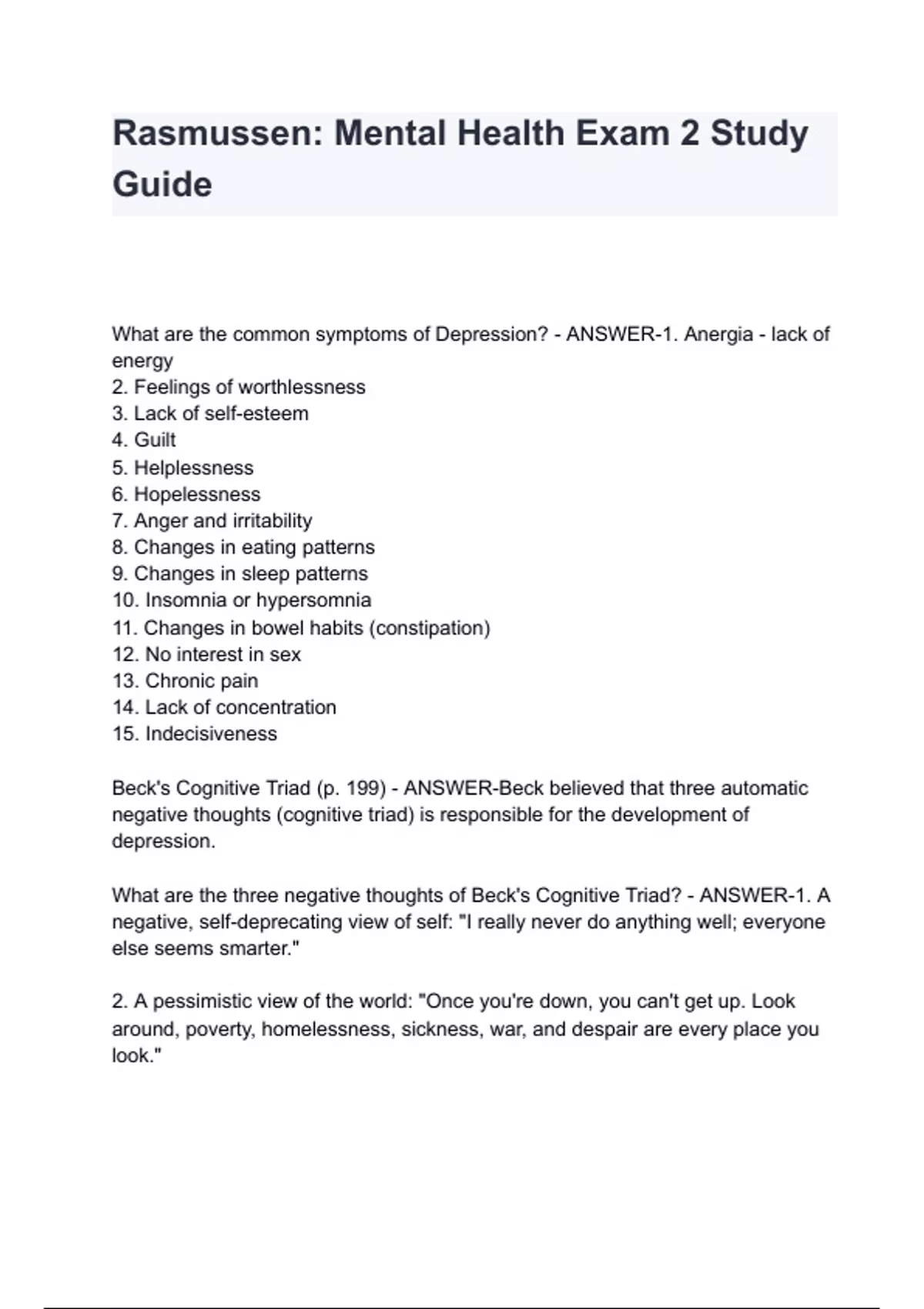 Rasmussen: Mental Health Exam 2 Study Guide questions and answers