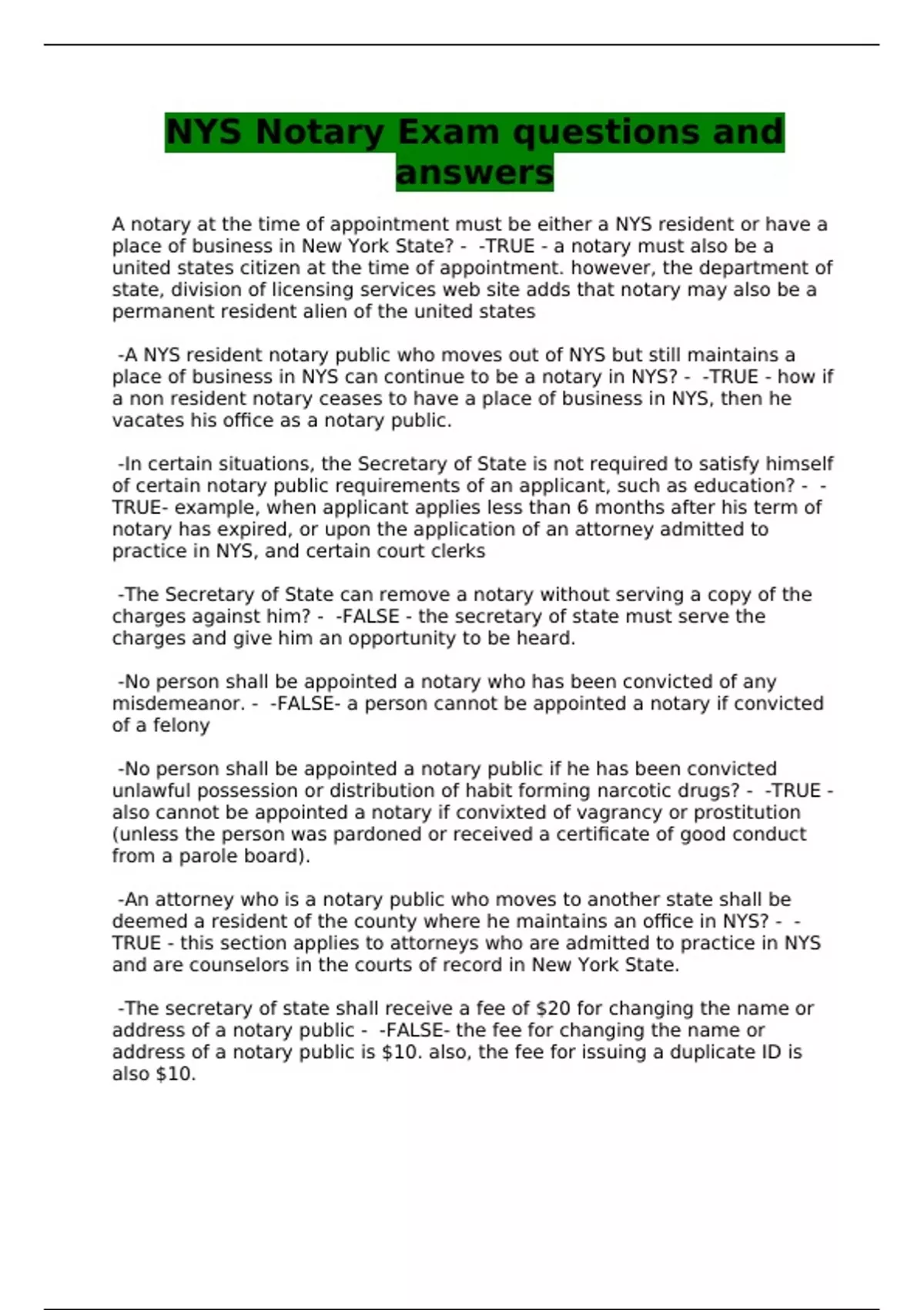 NYS NOTARY EXAMS - QUESTIONS AND ANSWERS - BUNDLE