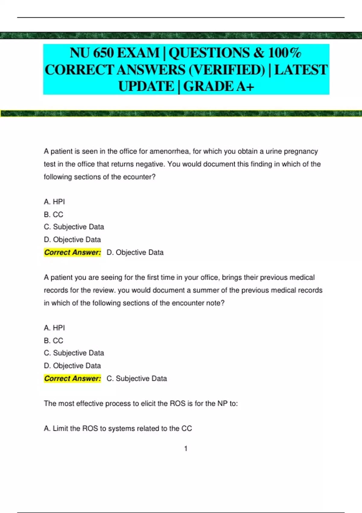 NU 650 EXAMS PACK | QUESTIONS & 100% CORRECT ANSWERS (VERIFIED) | LATEST UPDATE | GRADEA+