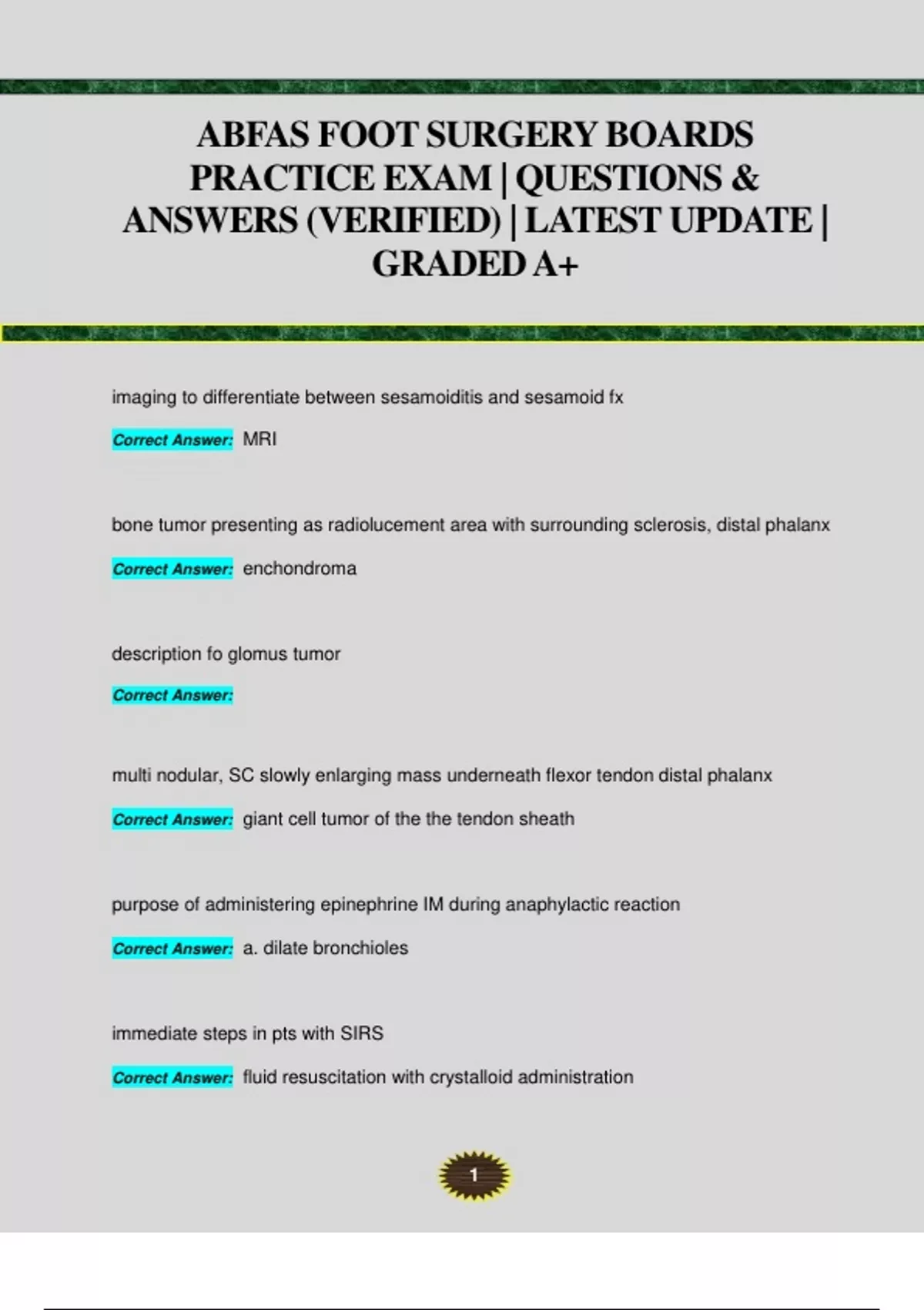 ABFAS EXAM PACK | QUESTIONS & ANSWERS (VERIFIED) | LATEST UPDATE | GRADED A+