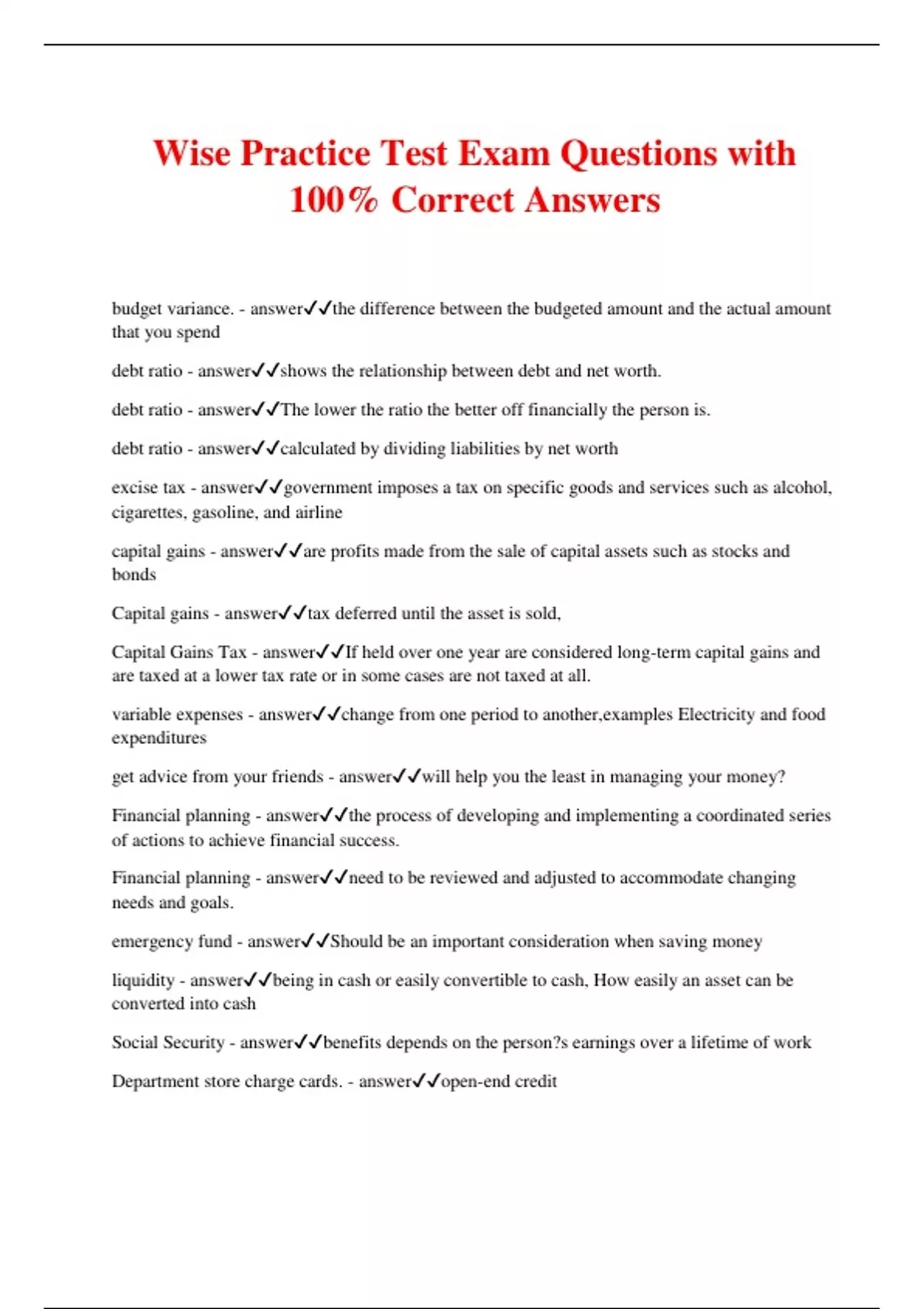 Wise Practice test Exam Questions With 100% Correct Answers 2024/2025