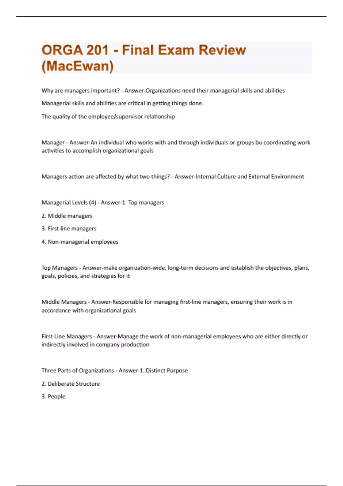 ORGA 201 - Final Exam Review (MacEwan) Questions Perfectly Answered!!