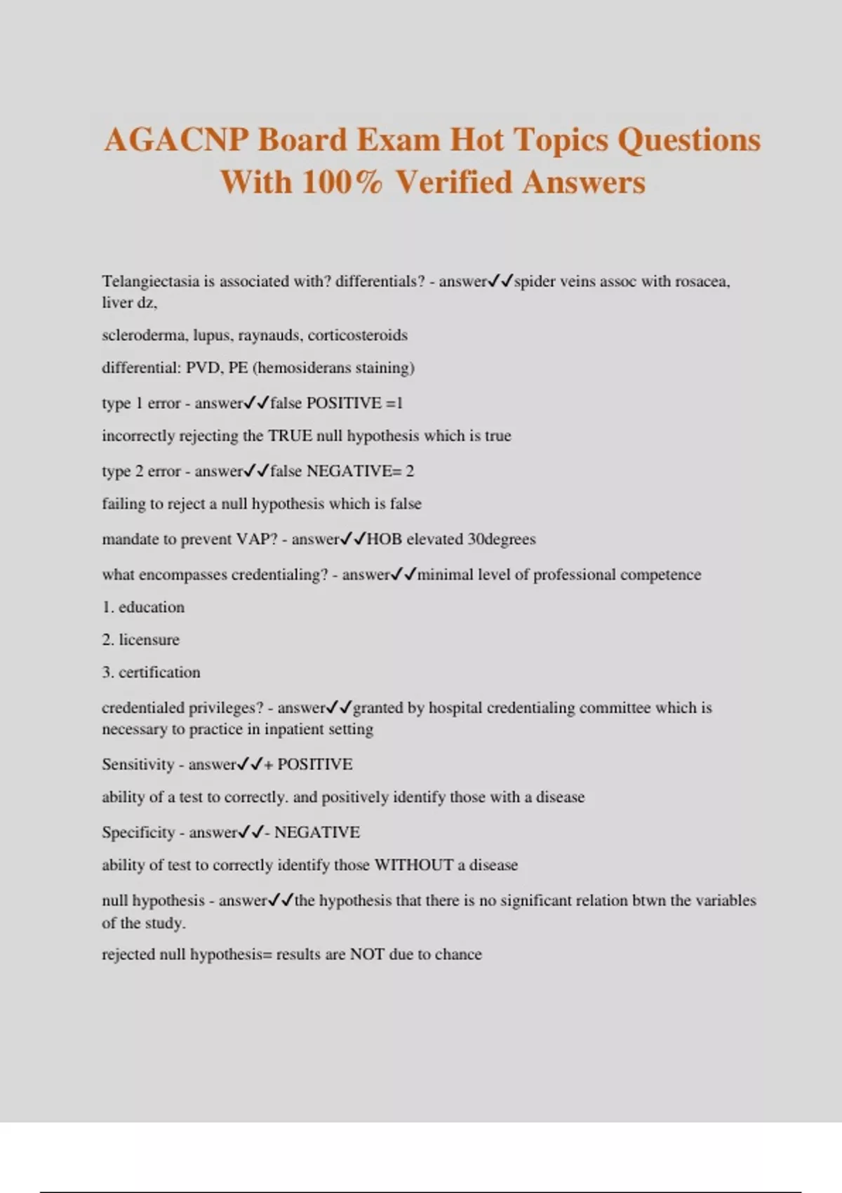 AGACNP Board Exam Hot Topics Questions With 100% Verified Answers