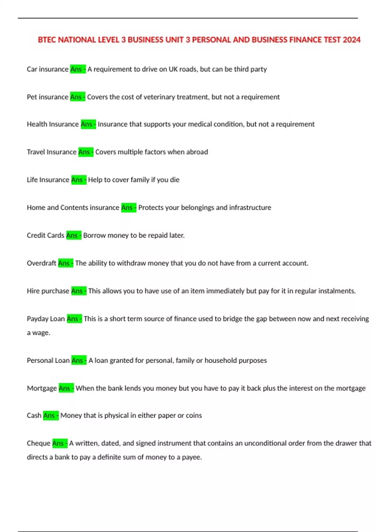 BTEC NATIONAL LEVEL 3 BUSINESS UNIT 3 Car insurance Ans - A requirement to drive on UK roads, but can be third party Pet insurance Ans - Covers the cost of veterinary treatment, but not a requirement Health Insurance Ans - Insurance that supports your medical condition, but not a requirement Travel Insura