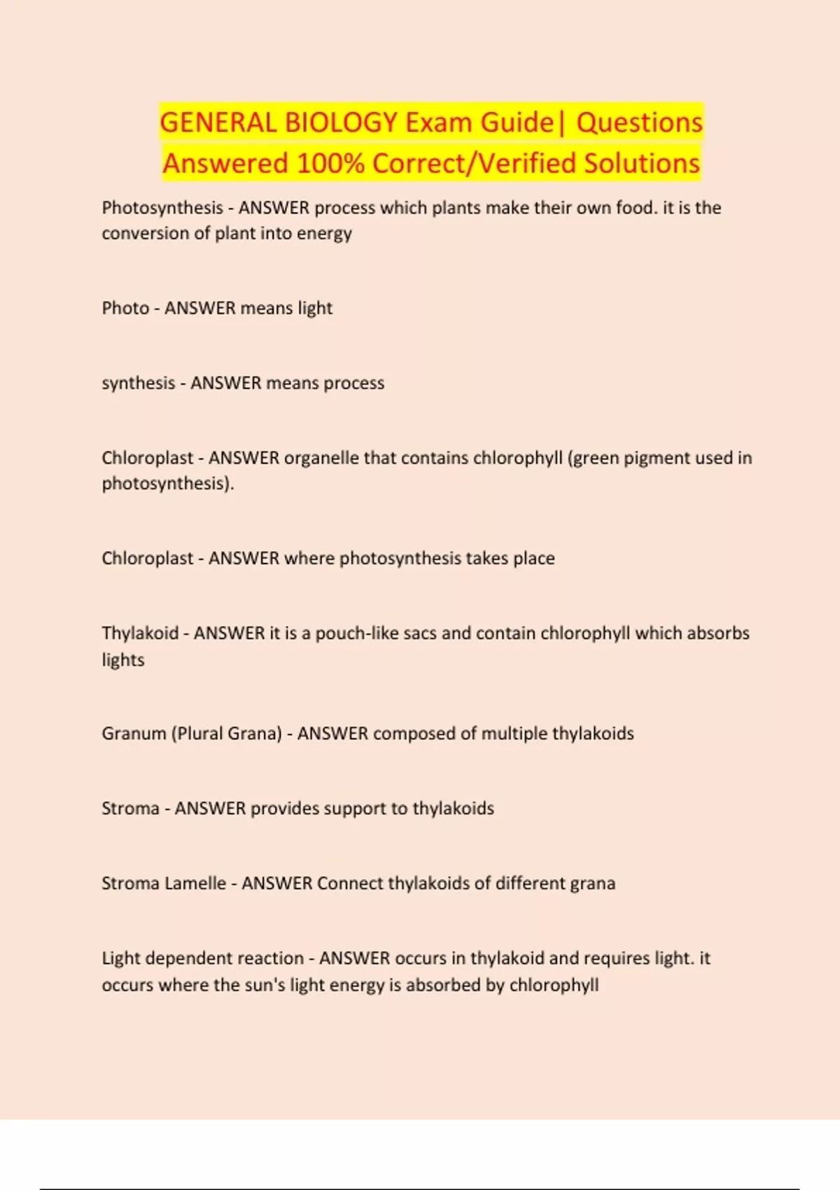 GENERAL BIOLOGY Exam Guide| Questions Answered 100% Correct/Verified Solutions