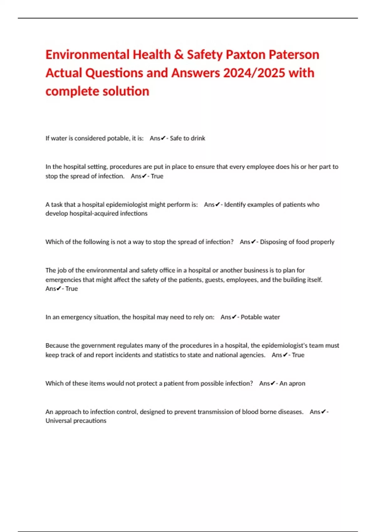 Environmental Health & Safety Paxton Paterson Actual Questions and Answers 2024/2025 with complete solution HIM Paxton Patterson Exam Questions and Answers 2024/2025 with complete solution Sports Medicine Paxton Patterson 6-9 Questions and Answers 2024 with complete solution Biomedical Engineering, Environmental Health & Safety Paxton Paterson, oph