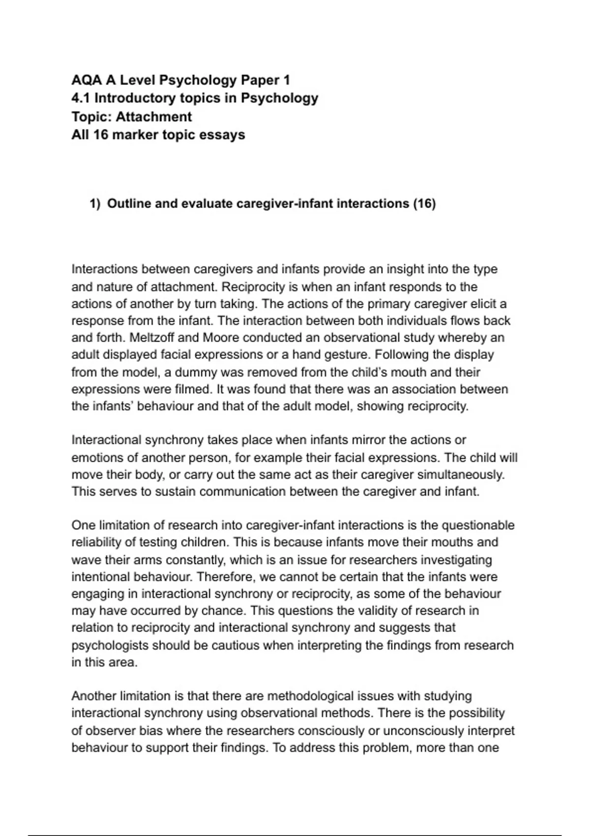 AQA A Level Psychology Paper 1,2 and 3 Topic essays