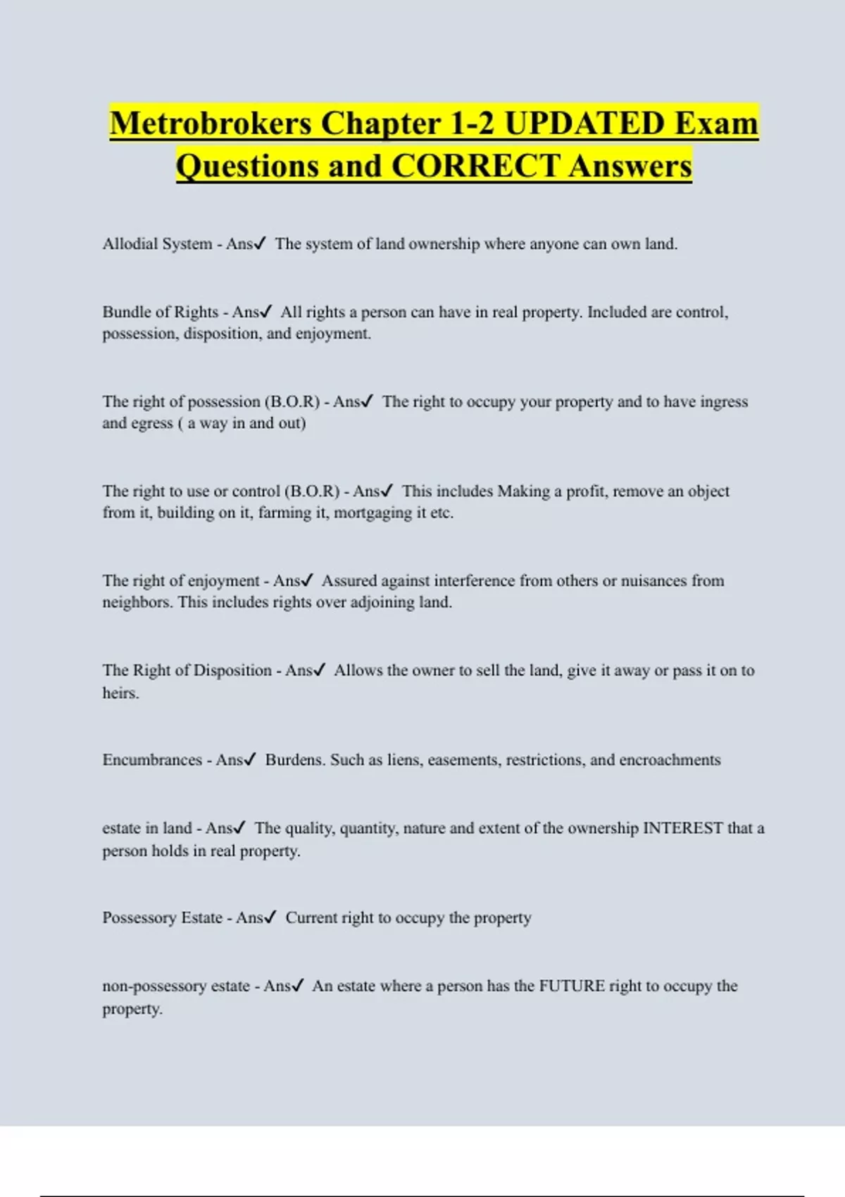 Metrobrokers Bundled Exam Questions Package with Correct Answers