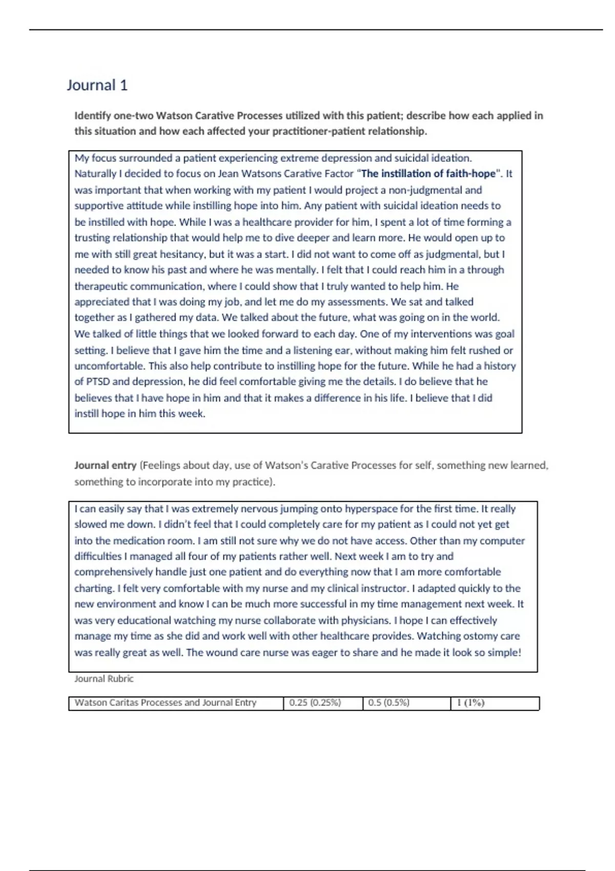 BIOL MISC Exploring Watson's Carative Processes in Healthcare Practice Journal 1 Walden Summer 2024