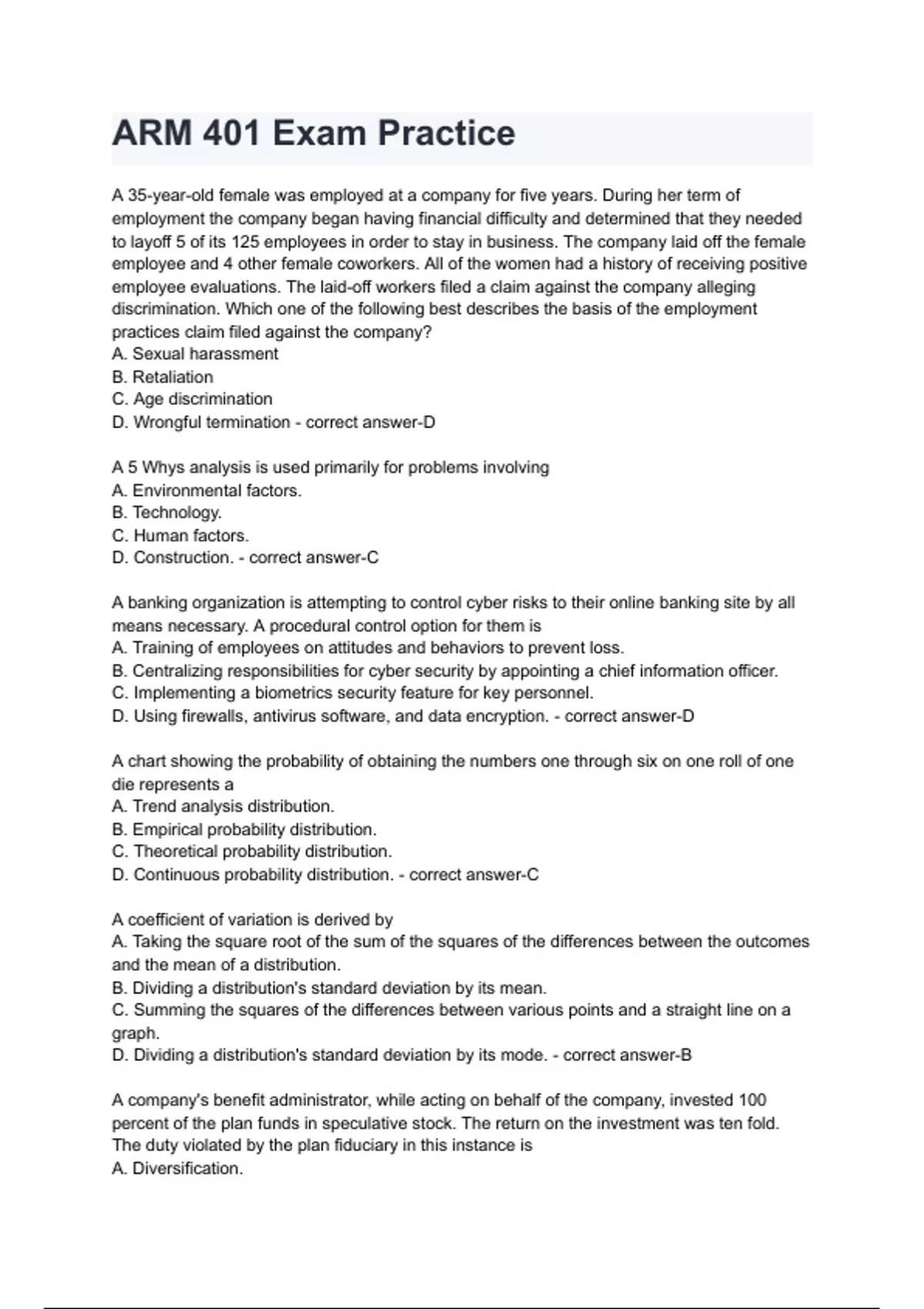 ARM 401 Practice Exam Bundle