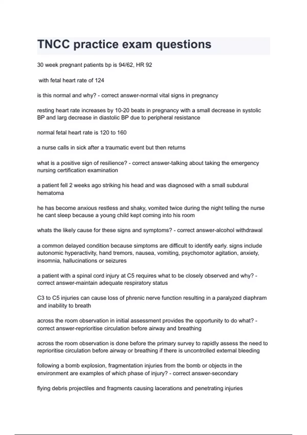 TNCC practice exam Bundle