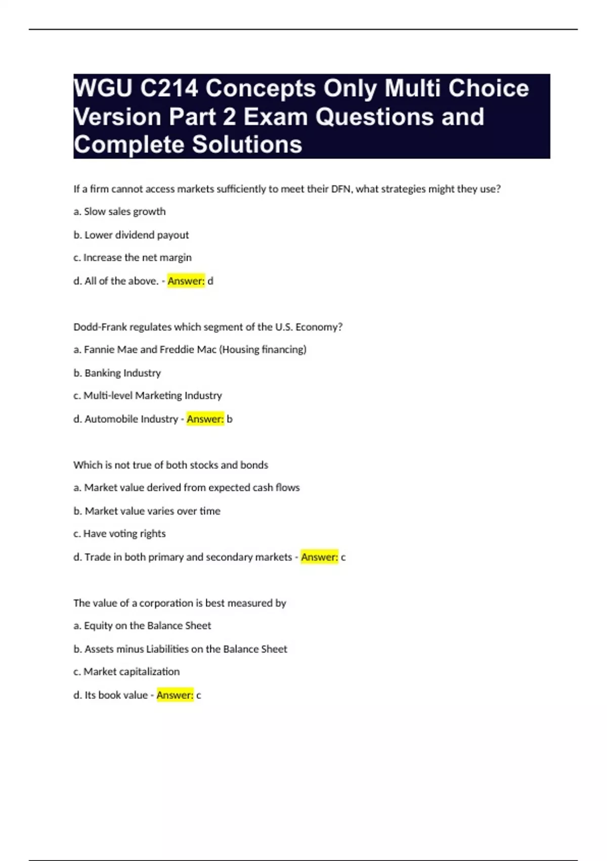 WGU C214 Exam Questions and Complete Solutions Bundle Compilation Graded A+