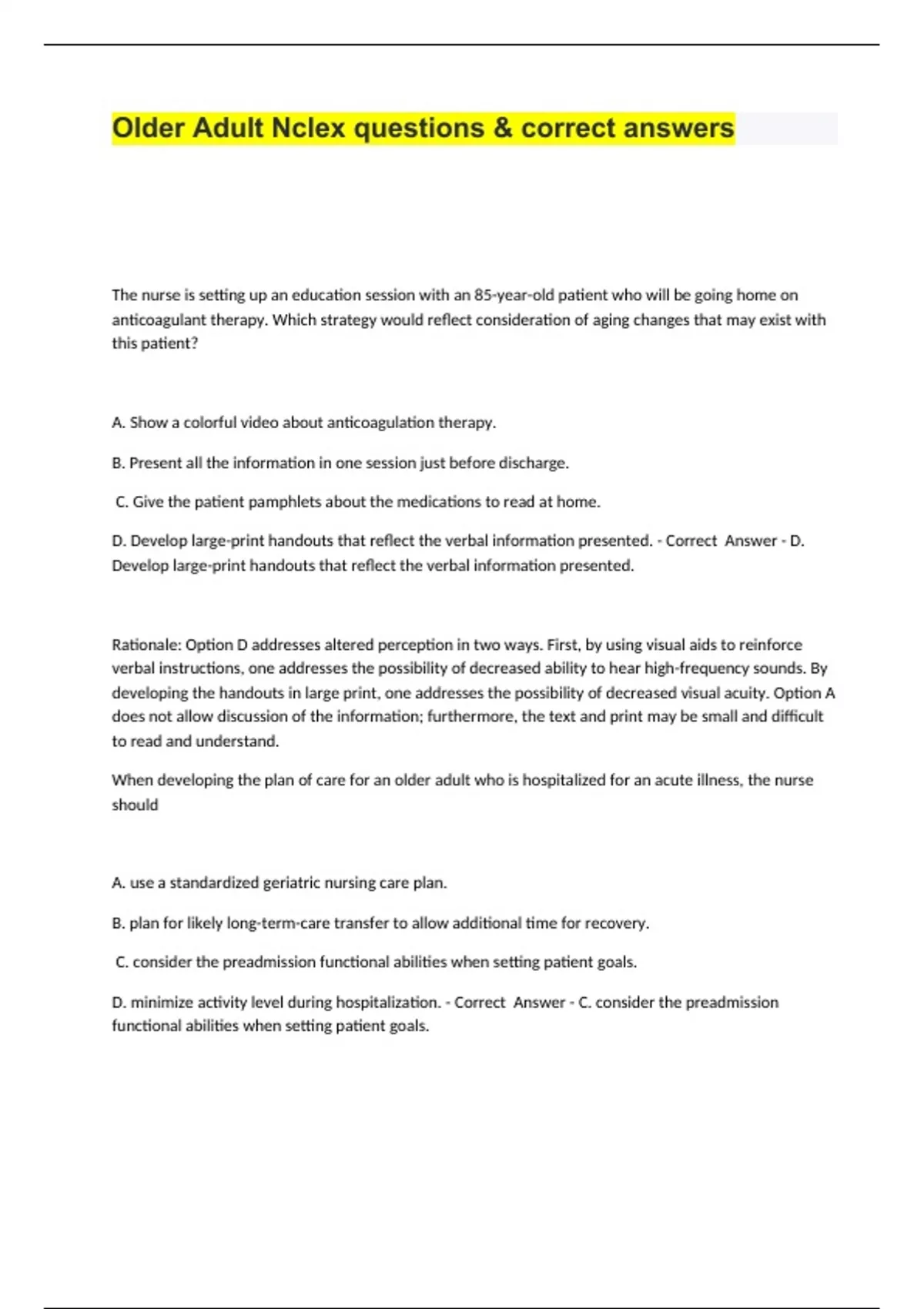 1 Exam (elaborations) Older Adults-2 Exam Questions And 100% Correct Answers New Update 2 Exam (elaborations) OLDER ADULT Exam Questions Correctly Solved 3 Exam (elaborations) Older Adults Exam Questions And Correct Answers 4 Exam (elaborations) OLDER ADULT 2024 EXAM MARKING SCHEME 100% VERIFIED