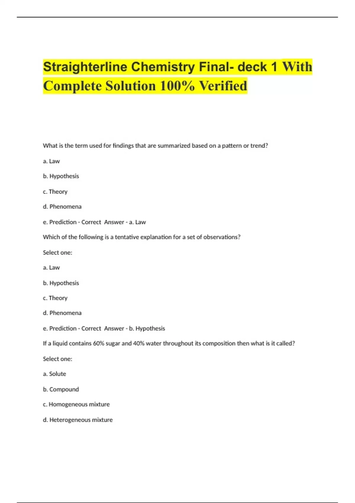 BUNDLED - ALL ABOUT STRAIGHTERLINE CHEMISTRY ; STRAIGHTERLINE CHEMISTRY FINAL EXAM,, Straighterline Chemistry Final- deck 1-5,,Straighterline Chem 101 Exam 1-4. Complete Package Deal latest 2023/2024 Guaranteed success!!!