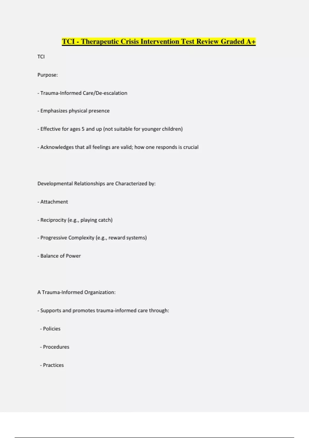 TCI (Therapeutic Crisis Intervention) Verified Bundle Solution Rated A