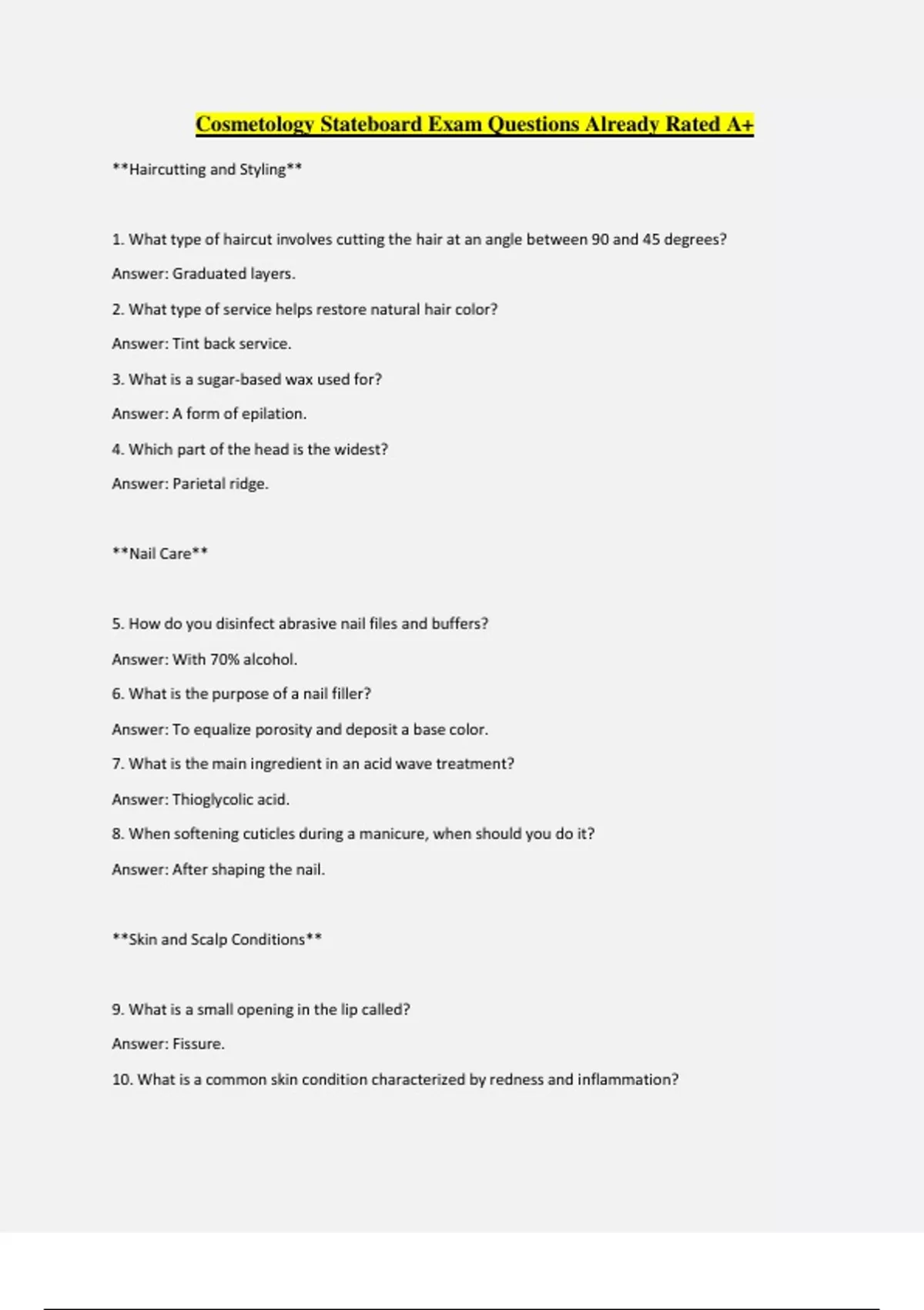 State Board Cosmetology Verified Bundle Deal With Complete Papers Rated A