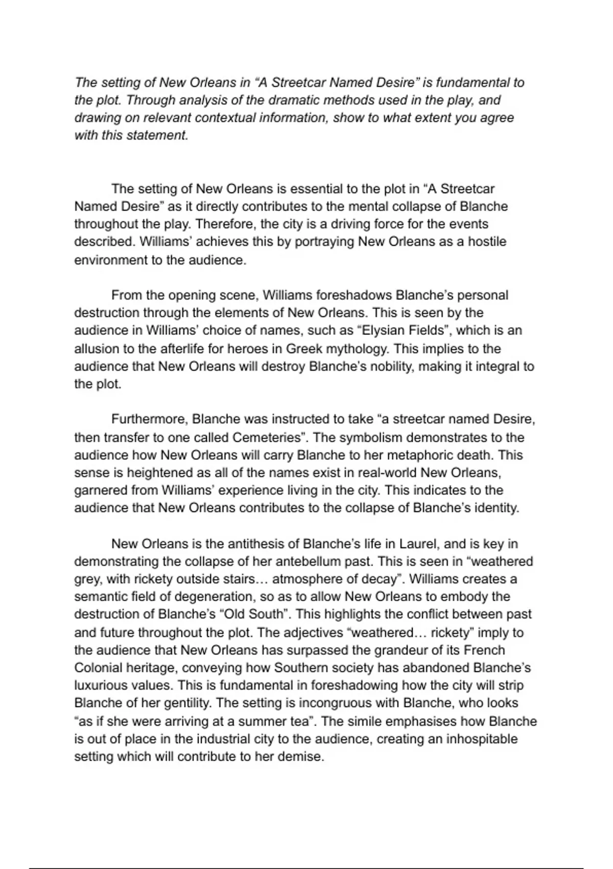Essays- “A Streetcar Name Desire”