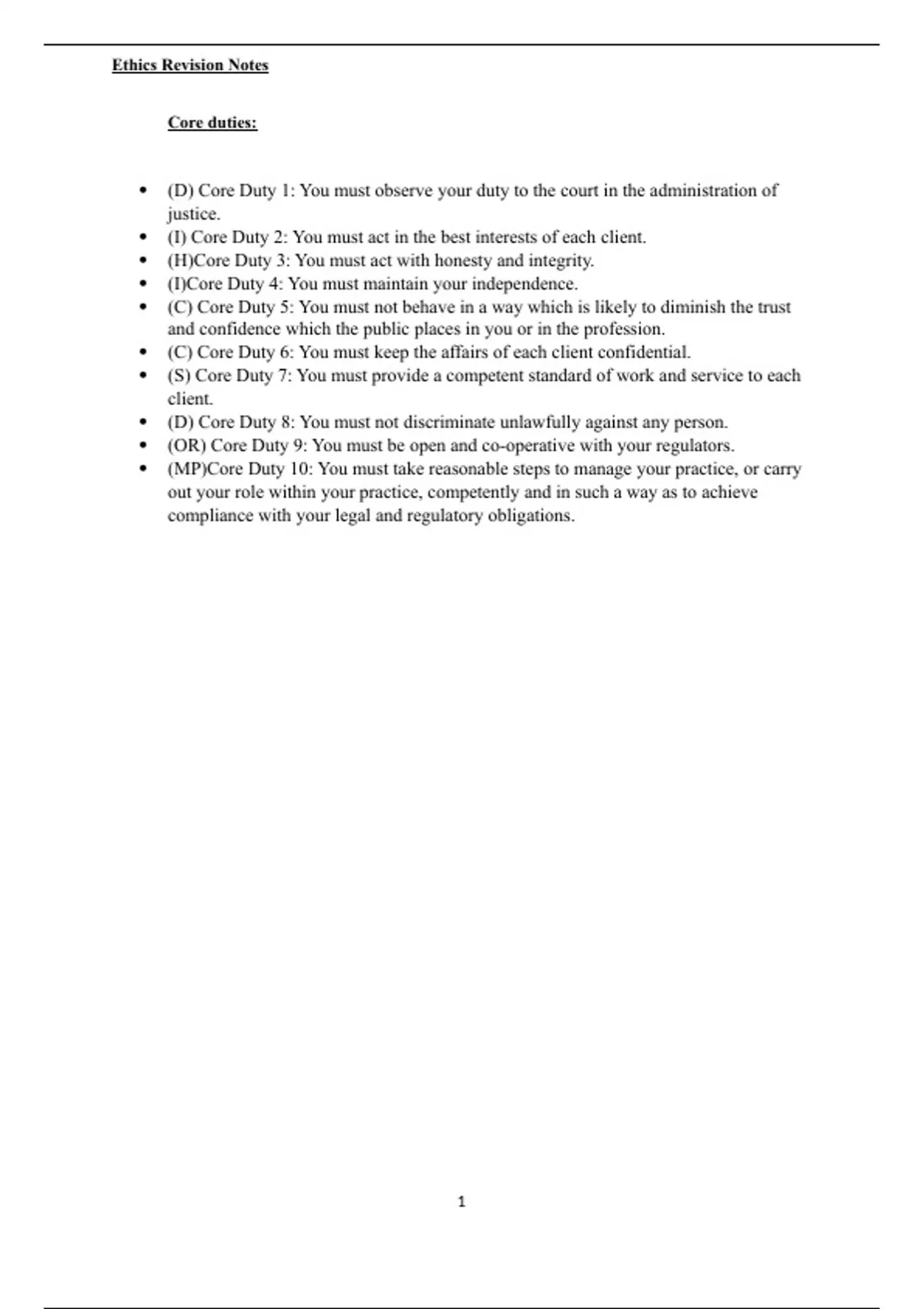 Criminal & Civil full revision notes + Ethics Revision notes.
