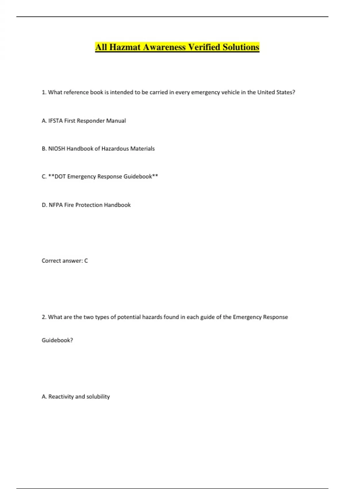 All Hazmat Awareness Verified Solutions