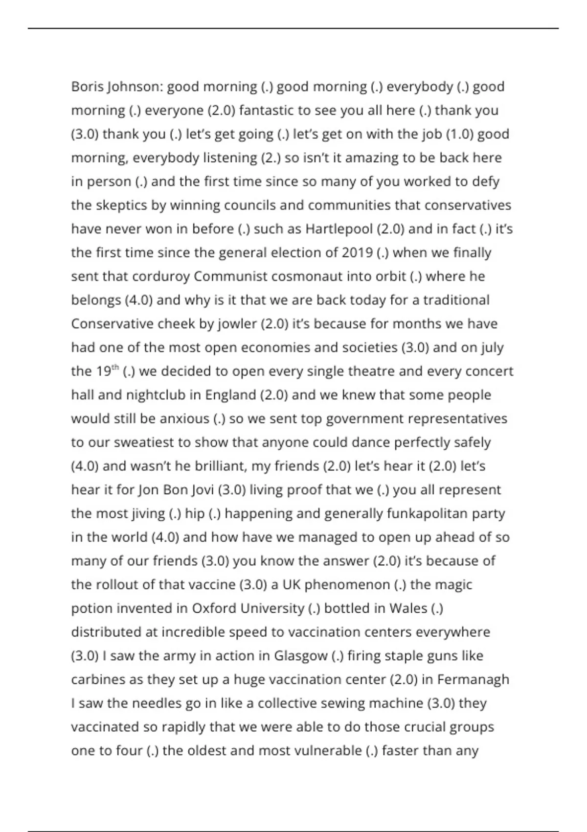 Summary Boris Johnson's Speech Transcribed for my English Language NEA Investigation