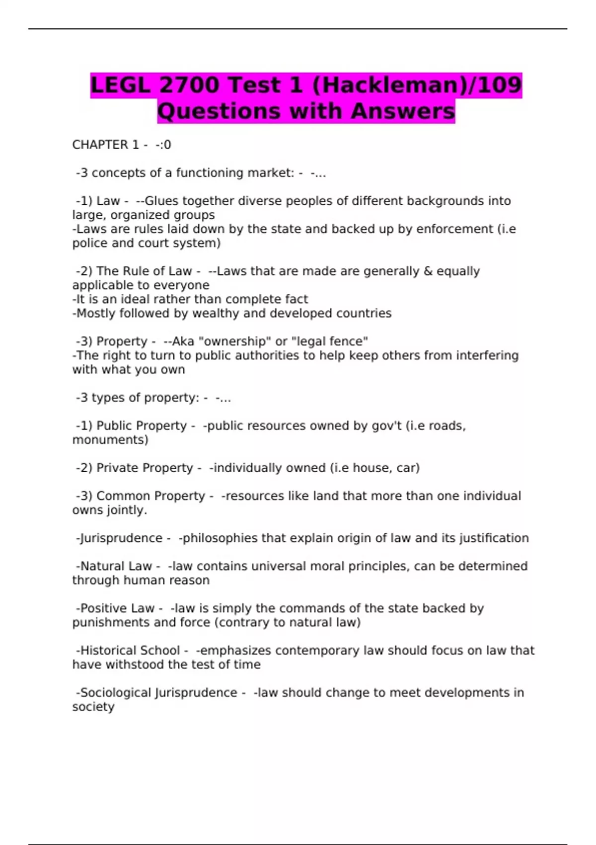 LEGL 2700 Final Exam UGA (Hackleman)/679 Q’S AND A’S