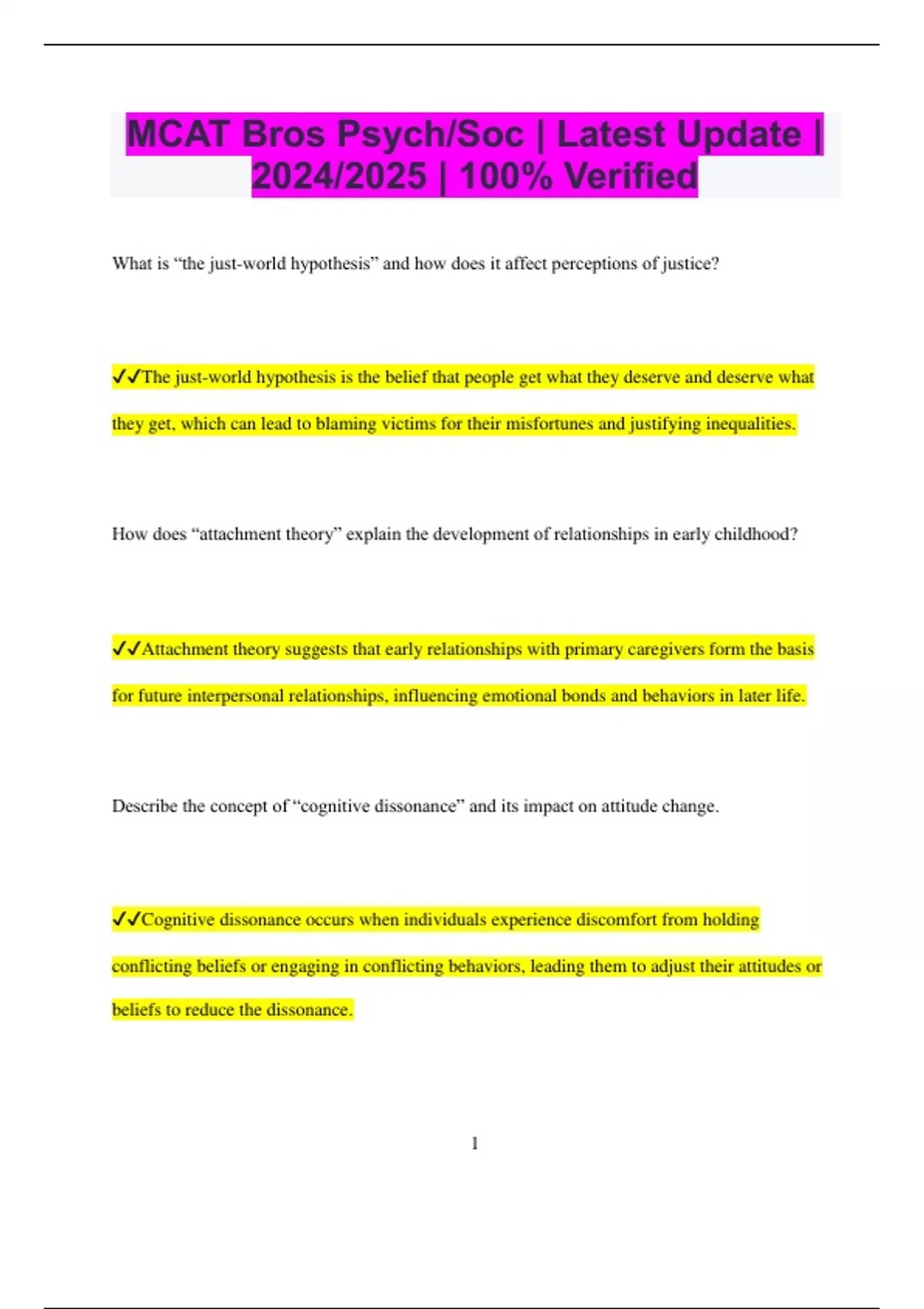 MCAT Psych/Soc Bundled Exams Questions and Answers Multiple Versions Latest Updates (2024/2025) (Complete and Accurate)
