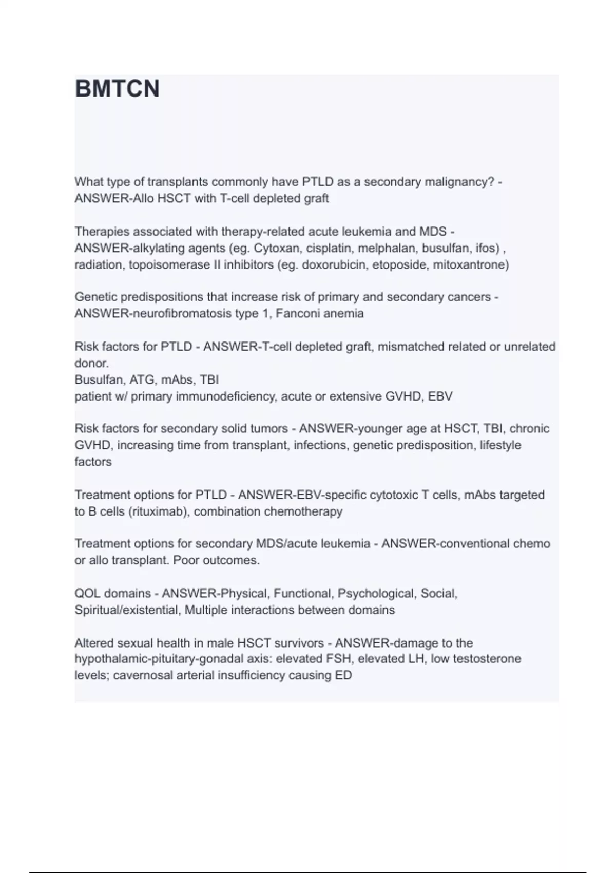 BMTCN Chapter 7- Surivorship Issues Questions &Exam (COMPLETE ANSWERS elaborations) answers 100% satisfaction guarantee