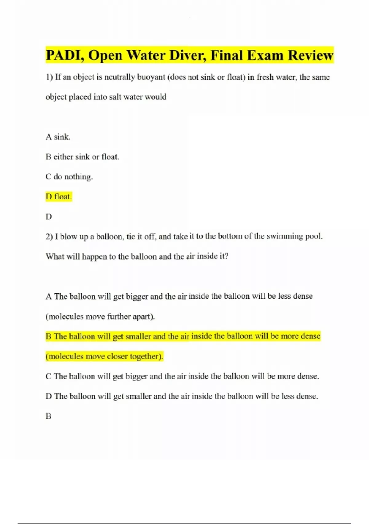 PADI, Open Water Diver, Final Exam Review PADI Open Water Diver Final Assessment PADI Open Water Exam Study Guide PADI Open Water Diver Certification PADI Open Water Diver Final Exam PADI Open Water Diver Final Exam 2024 PADI Open Water - Being a Diver I