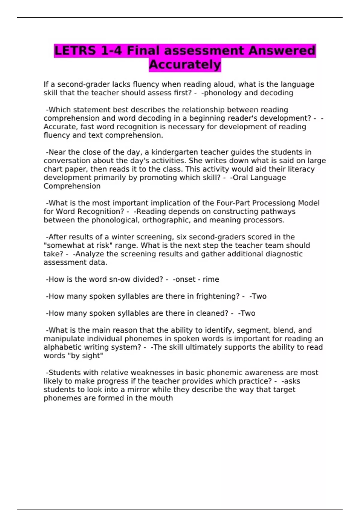 LETRS EXAMS /TESTS - QUESTIONS AND ANSWERS - COMPLETE BUNDLE