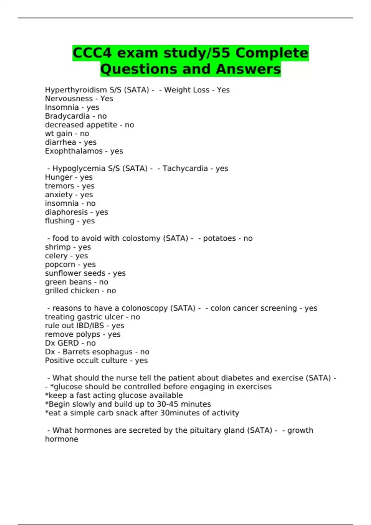 CCC4 EXAMS - QUESTIONS AND ANSWERS -BUNDLE