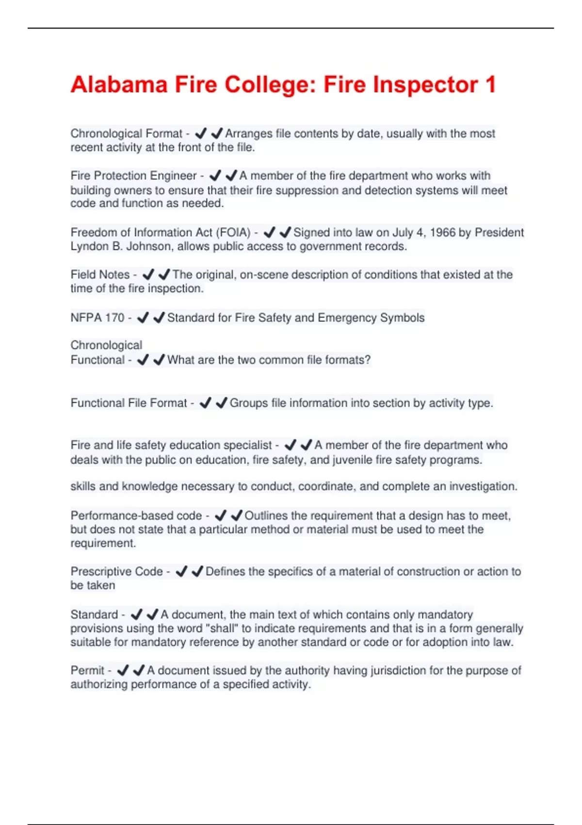 Alabama Fire College: Fire Inspector 1 Questions and Answers 100% Verified
