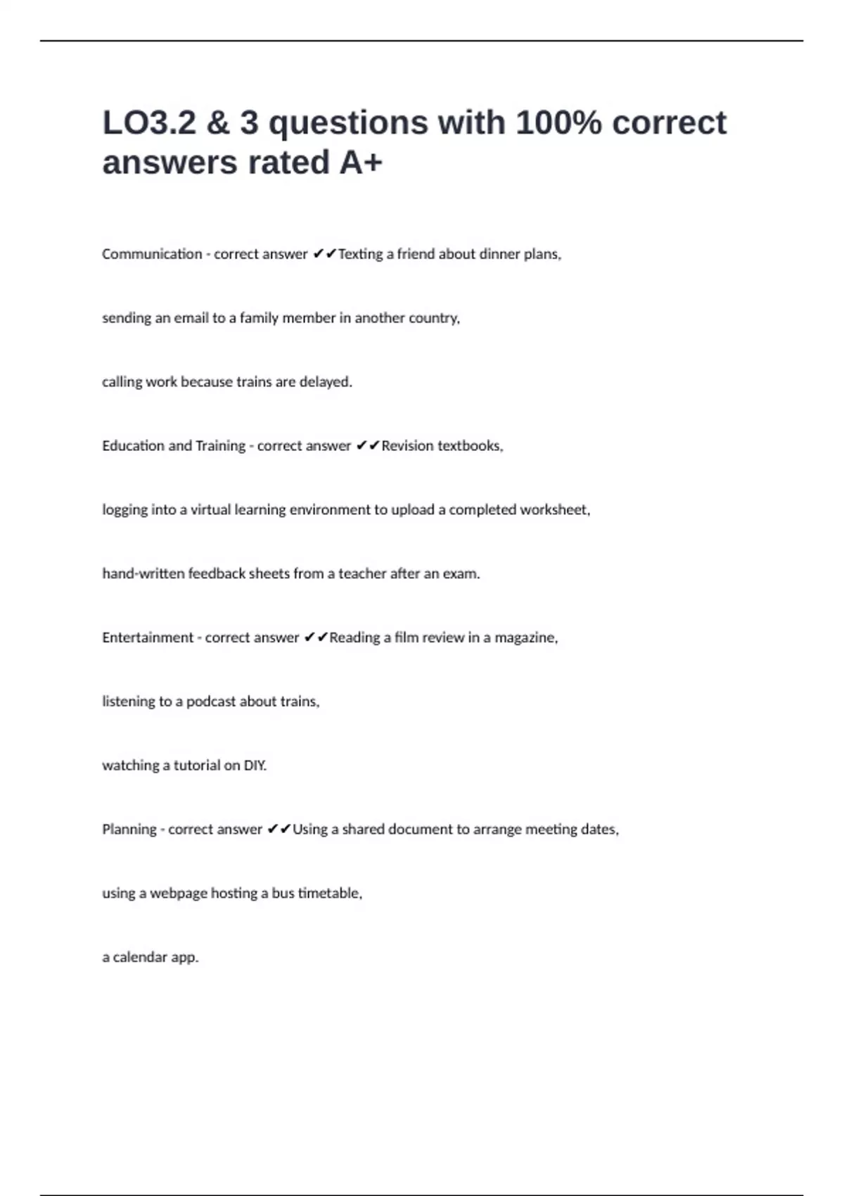 LO3 questions with 100% correct answers
