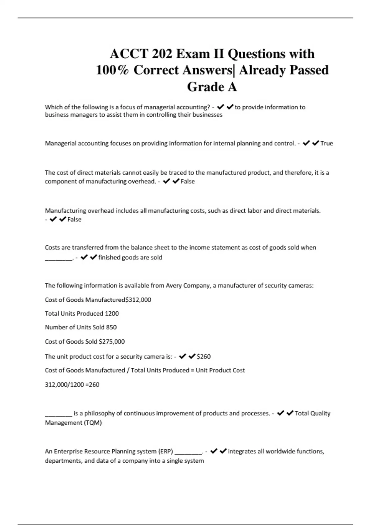 ACCT 202 Actual Exam Questions with 100% Correct Answers| Already Passed Grade A