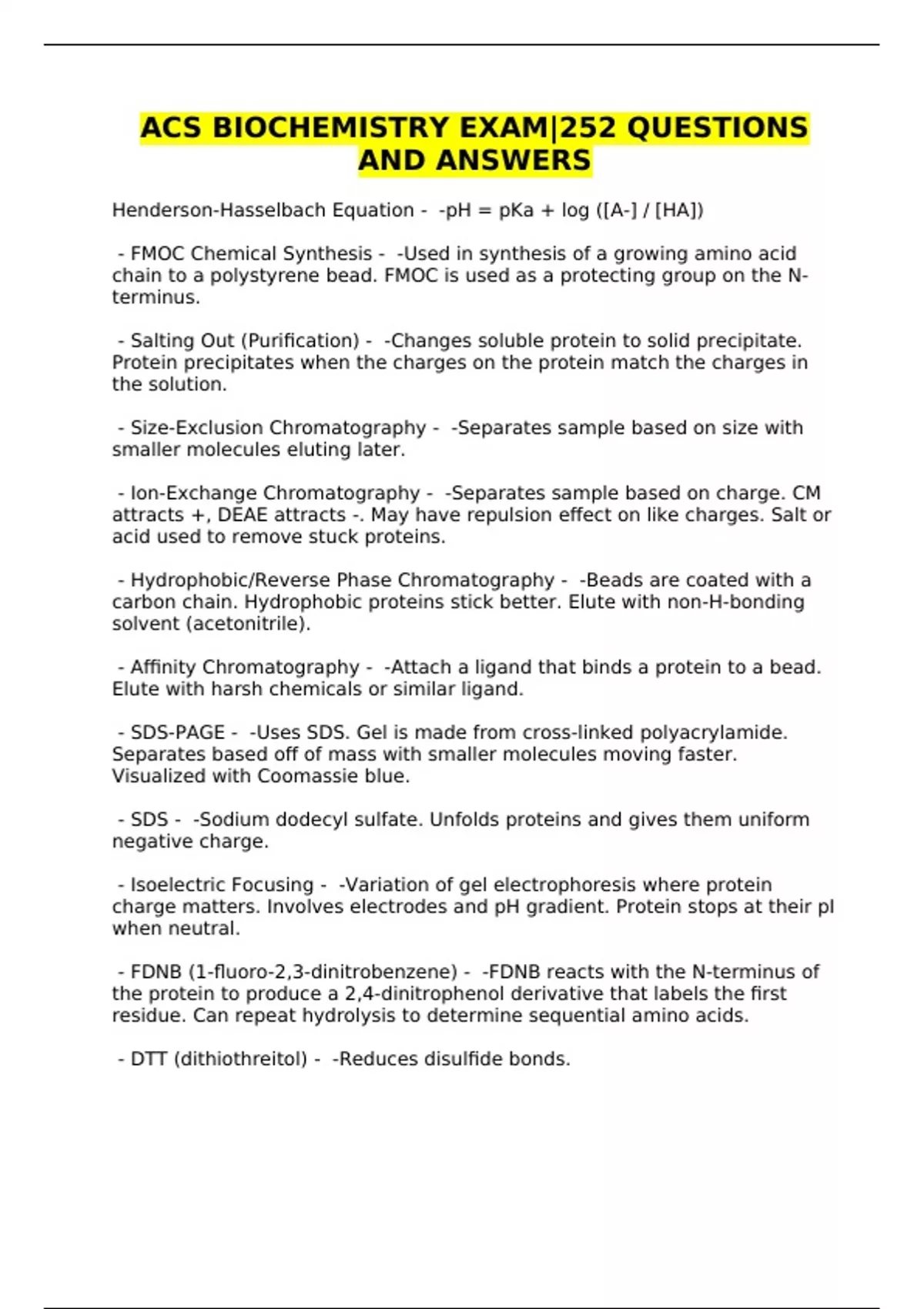 ACS BIOCHEMISTRY EXAMS - QUESTIONS AND ANSWERS - BUNDLE